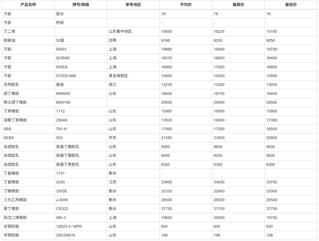 Last week(week16), influenced by news of easing tensions in the Middle East, prices for crude oil and commodities, especially raw materials for the rubber industry, generally declined, such as butadiene, natural rubber, and ordinary butadiene rubber. However, some specialty commodities, due to previous structural supply shortages, remained at high prices; for example, bromobutyl BB2030 and EPDM J-4045 even continued to rise.